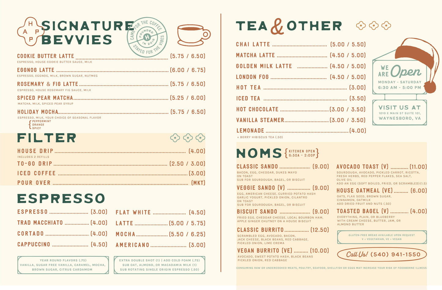 Happ's vision is to create an inclusive, immersive, and transparent coffee experience for the Waynesboro community. We are a roastery and cafe that prioritizes inspiration and education, creating a welcoming environment for coffee enthusiasts. It strives to be a place where customers can learn and find inspiration in the world of coffee. This vision is now centered on a 3,100 square foot plot in the Virginia Metalcrafters building at 1010 E. Main. The space will be divided into a 600 sq. ft. roastery/education center and a 2,500 sq. ft. cafe, offering artfully prepared coffee, unique spaces and showcasing local artisans. With these upgraded facilities, Happ is excited to bring their commitment to exceptional quality, social engagement, environmental responsibility, and customer transparency to a new level, and eagerly anticipates sharing this new space with the community.